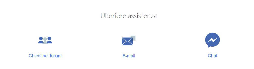 Dalla pagina che si aprirà il metodo consigliato è quello di richiedere l'avvio di una chat con l'operatore facebook per velocizzare la procedura.